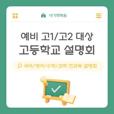 이에 이기적학원에서는 1차 설명회 11월 7일 (금) 오후 7시 2차 설명회 11월 8일 (토) 오후 2시 예비 고1, 고2 학부모님들을 대상으로 한 고등학교 설명회를 실시합니다.