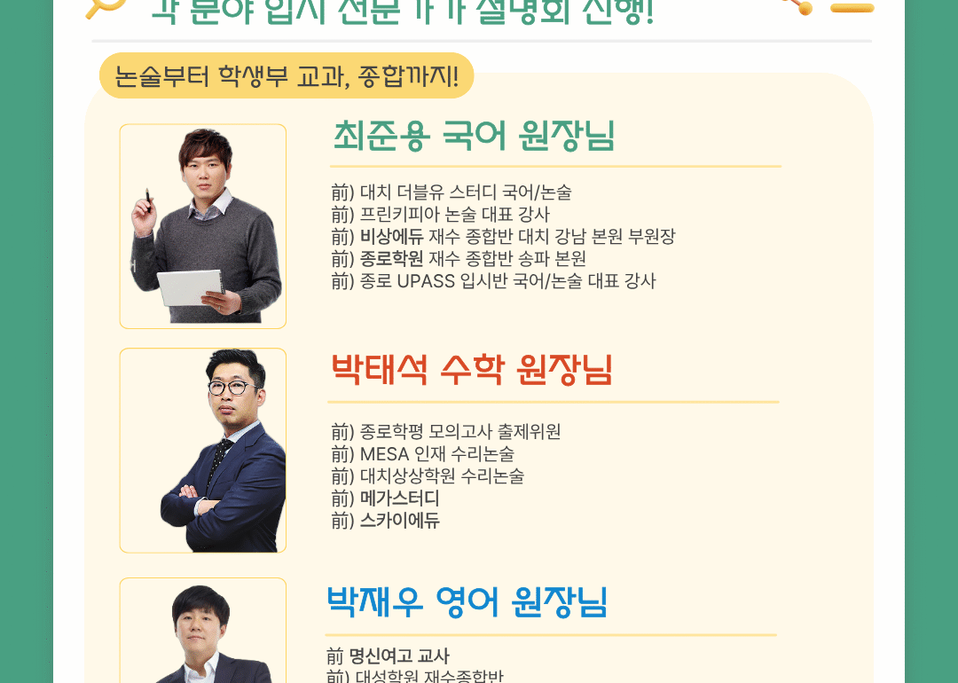 각 과목 및 입시계의 어벤져스라고 말씀드릴 수 있습니다 🙂