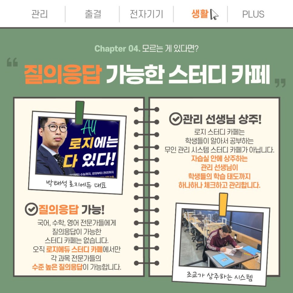 반면 로지 스터디 카페에서는 다릅니다.